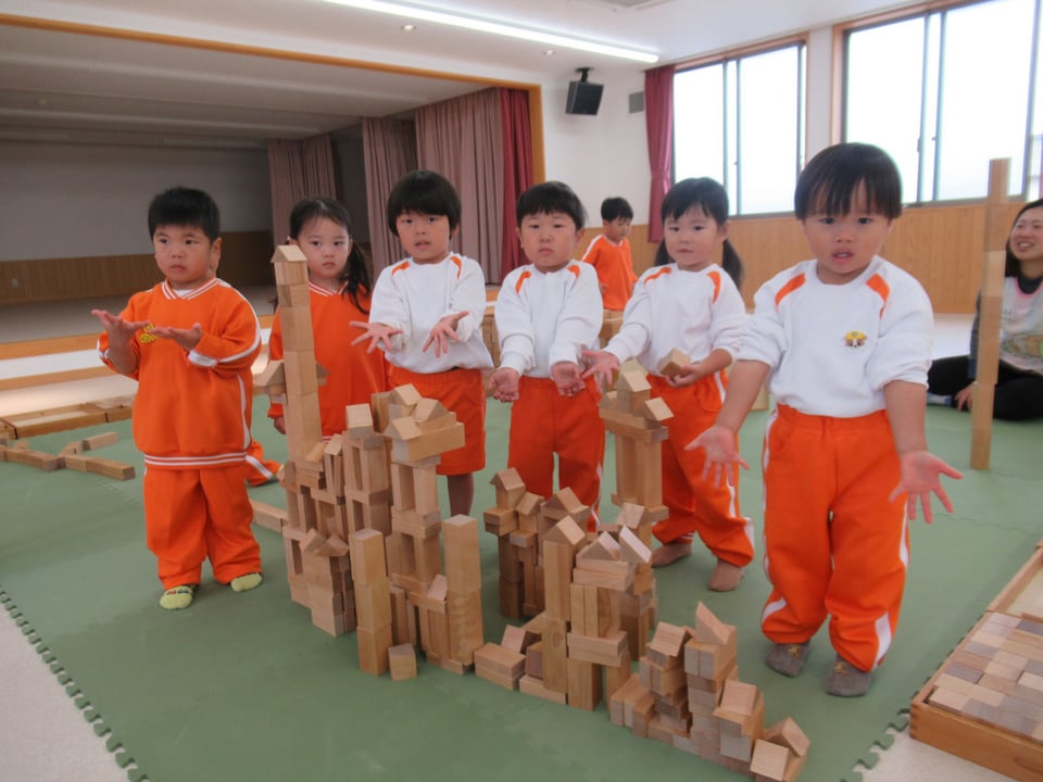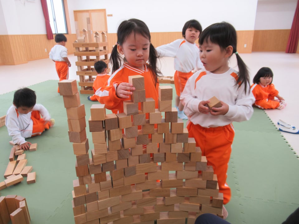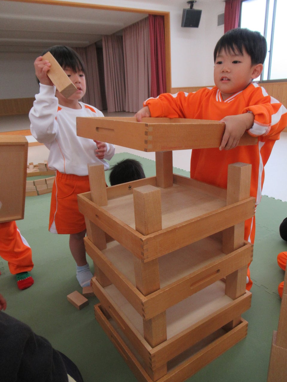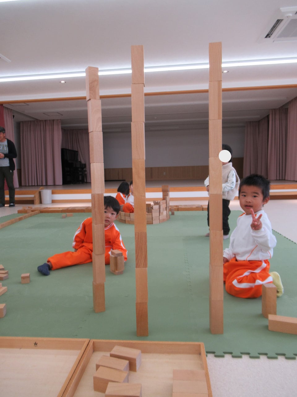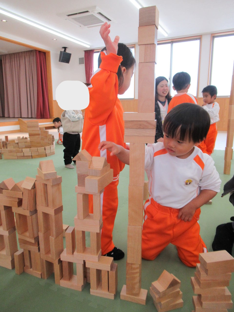 積み木遊びでは、黙々と気になる形に積み木を手に取り、重ねていきます✊