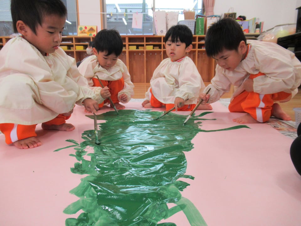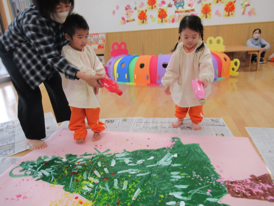 絵具が大好きな子どもたちは、筆を持って真剣な眼差しで塗り進め、「サンタさん来るかなぁ」と、期待を膨らませていました🎅✨
