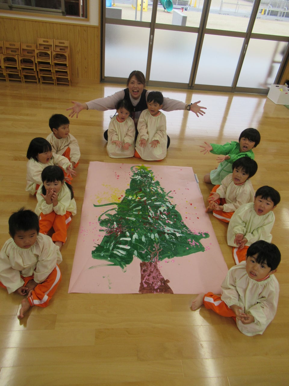 絵画教室では大きな模造紙に「クリスマスツリー🎄」を描きました🎨🖌️
