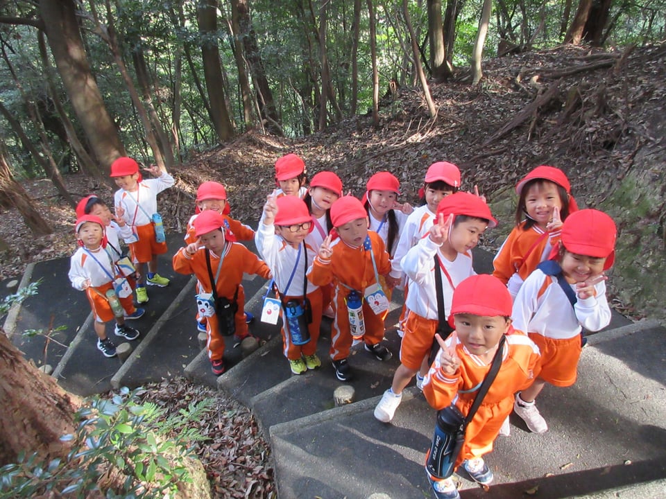 「トトロ出てきそう!」「熊出てきたらどうする?」「大きいどんぐりあるよ!」と、友だちとのやり取りを楽しみながら安全に登り切りました😊✨