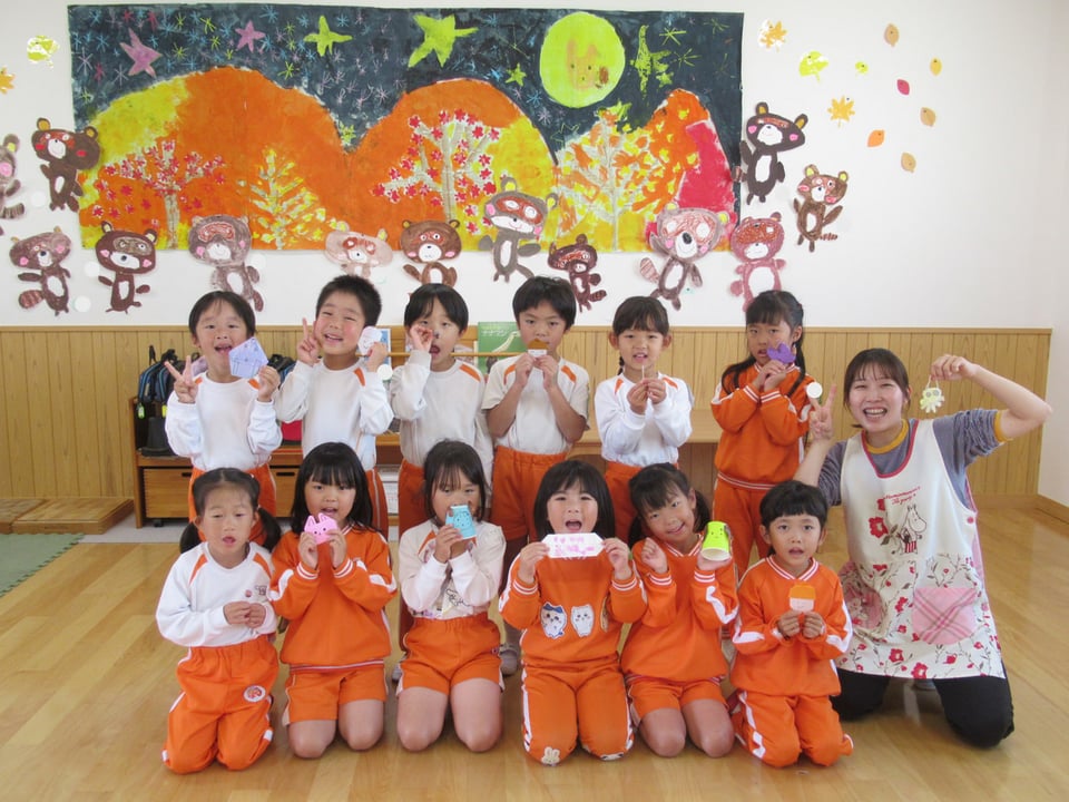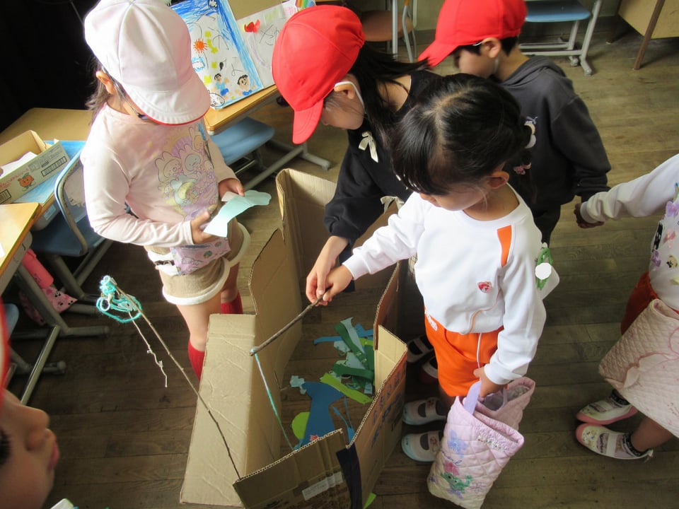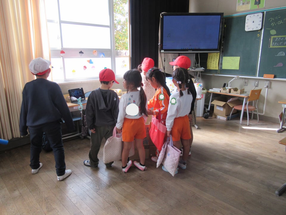 今日ははと組・めじろ組の年長さんが、久米小学校1年生の生活科「あきのおみせやさん」に招待され、遊びに行ってきました🎵