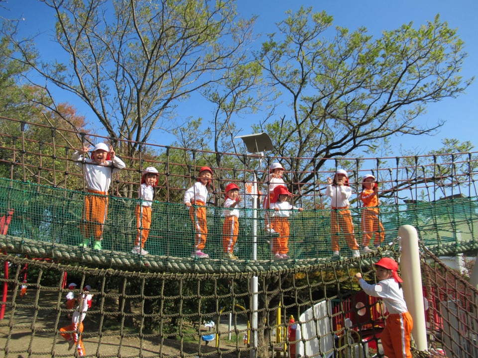 大小さまざまな滑り台を滑ったり、ターザンロープで遊んだりして元気いっぱいな子どもたち😆