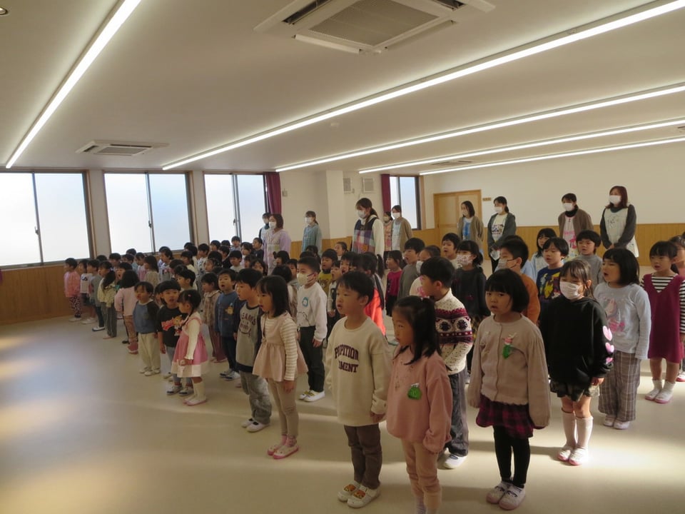 終業式では、園歌を歌ったり、園長先生の話を聞いたりして行いました😊🎵