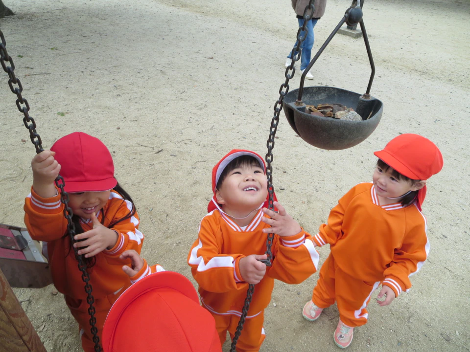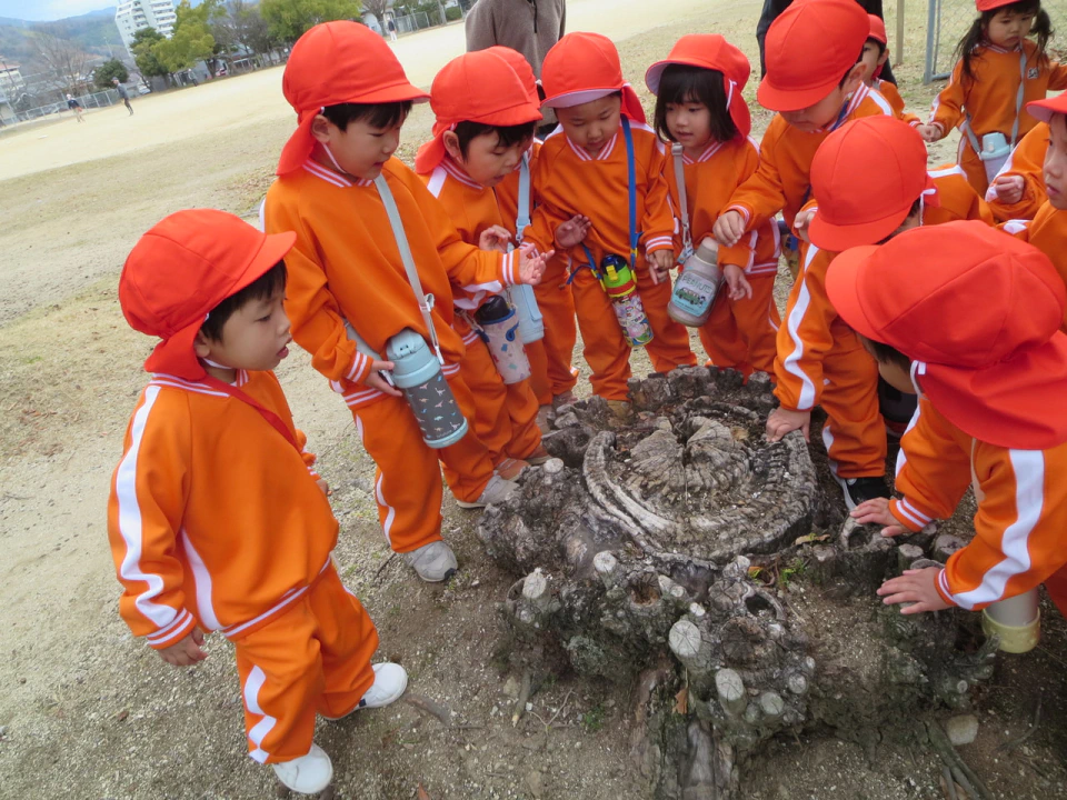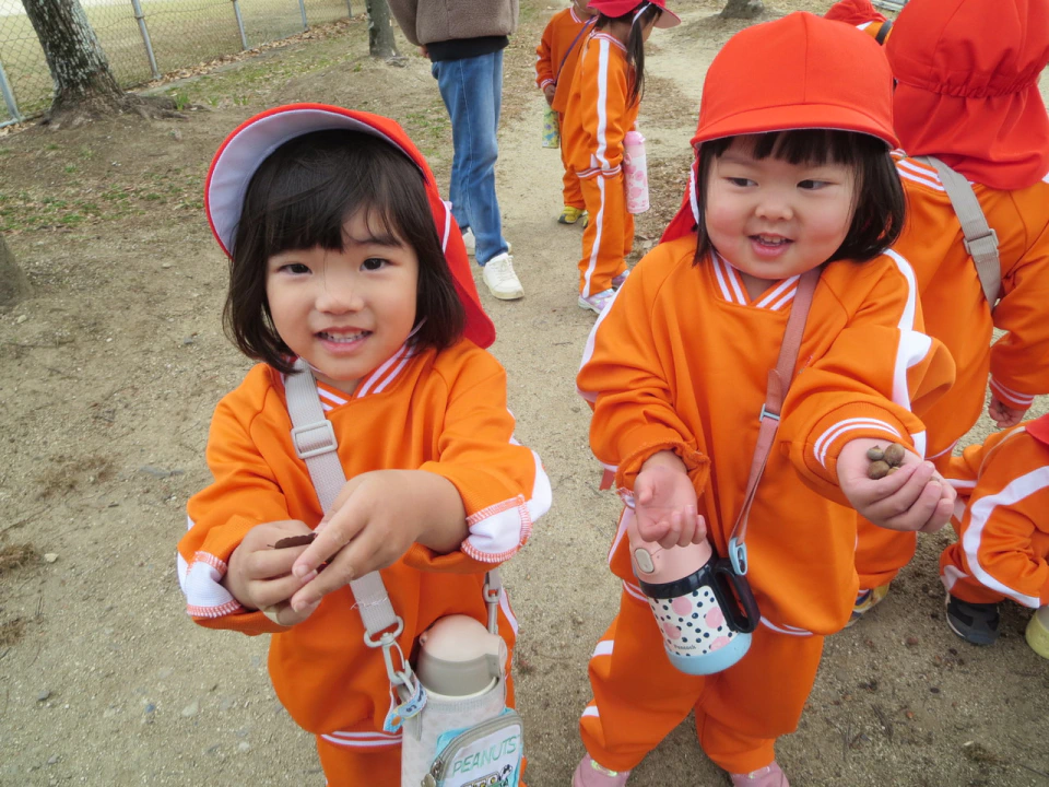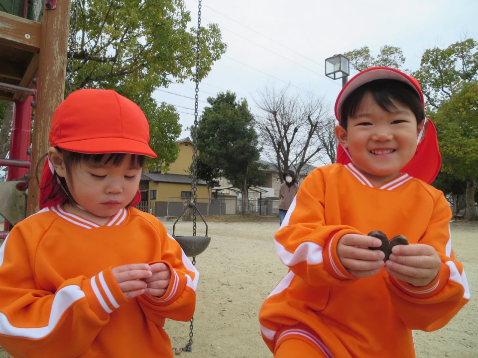 また、木の破片のような物が落ちており「ハートだ💖」「なにかの種かな?」と想像が膨らんだり、どんぐりが残っていたりと、自然物にも触れることが出来、良い機会になりました🍃